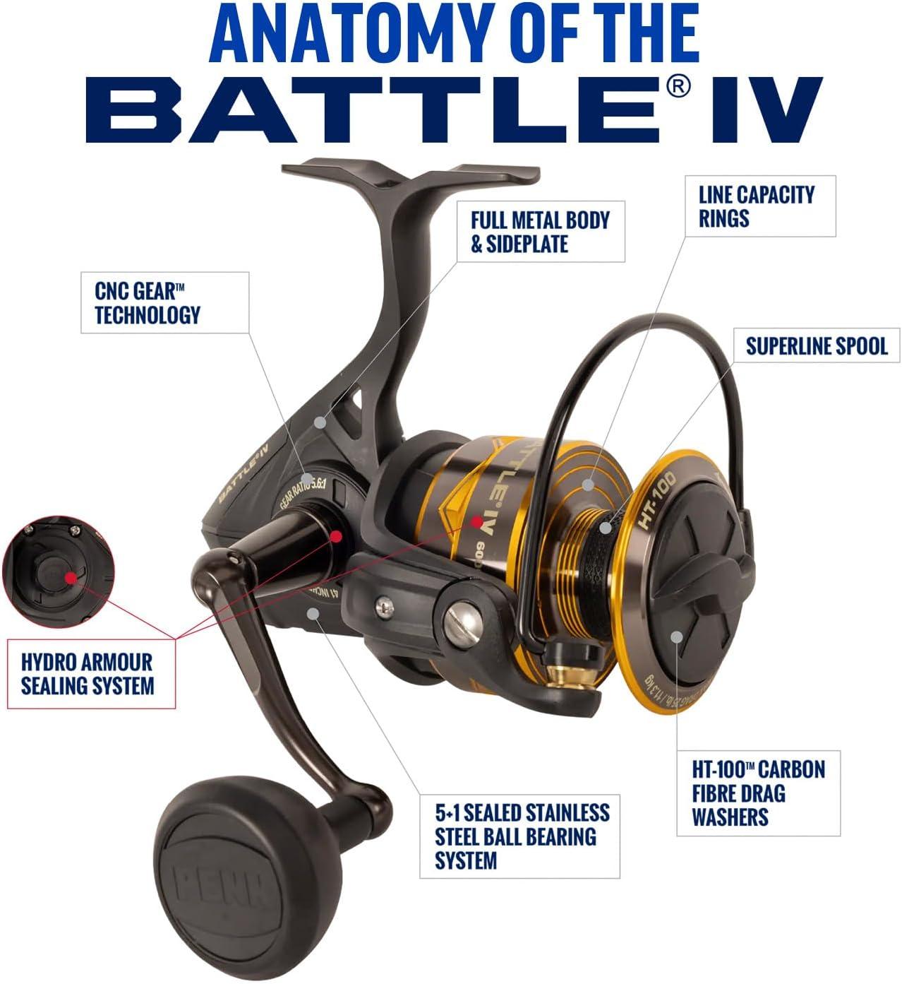 PENN BATTLE SIZE 6000 SPINNING FISHING REEL: Stronger and more durable than ever, the PENN Battle IV Spinning fishing reel is built to tackle big saltwater game fish.