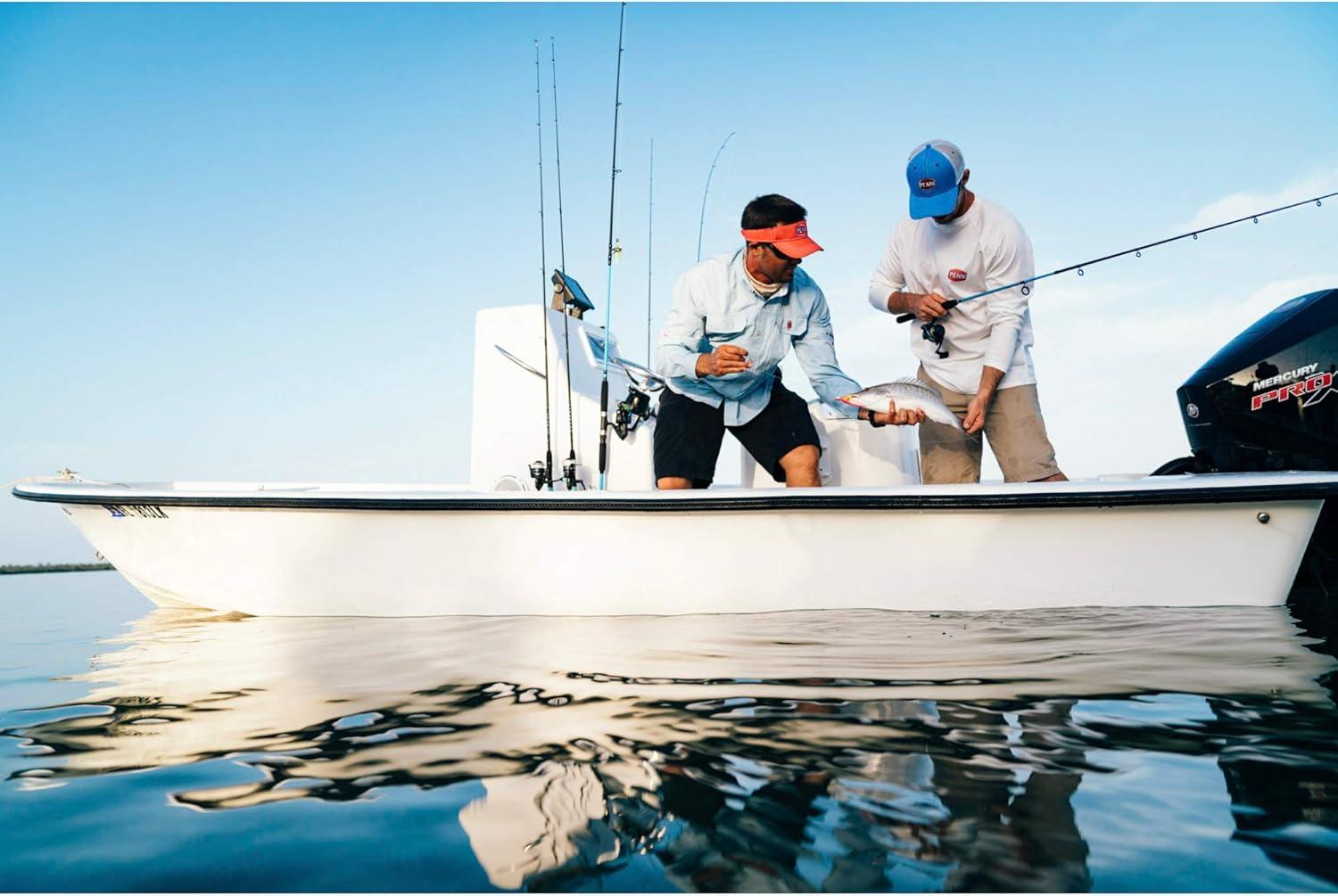 Penn's Spinfisher VI Long Cast Spinning Reels revolutionize casting distance. While the Spinfisher V had one long cast model, the VI offers three. This new generation boasts enhanced CNC gears, delivering smoother, longer-lasting performance with increased power. Coupled with a robust metal body, protective seals, six ball bearings, and a potent HT-100 drag system, these reels are tough yet enjoyable to use. The long cast spool design and ultra-slow oscillation let you cast lures farther than ever before. Combine one with your favorite surf rod, and you'll be reaching fish far out at sea. Available in 5500, 6500, and 7500 models, Penn's Spinfisher VI Long Cast Spinning Reels offer an ideal blend of power and performance at an affordable price.